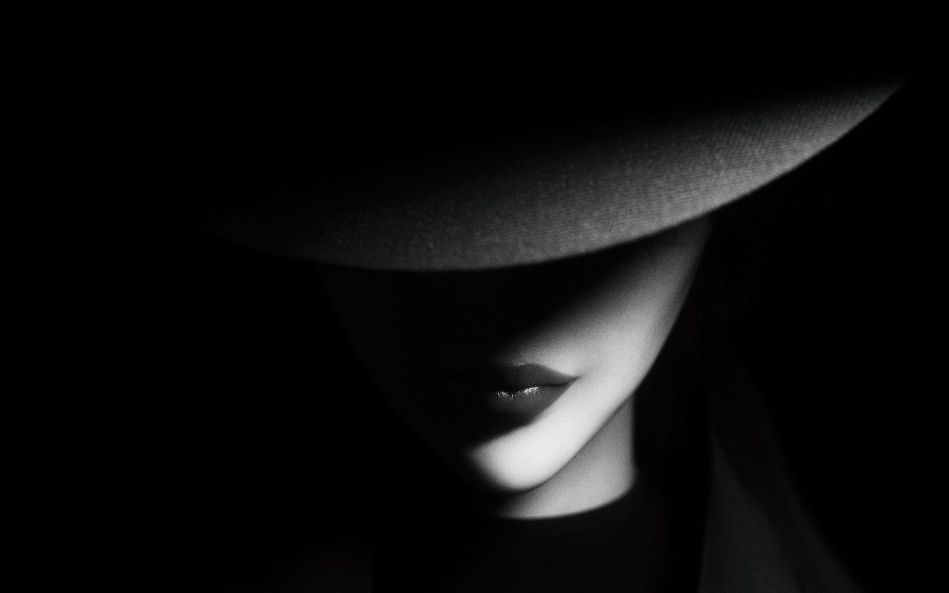 Девушка в шляпе черно белое