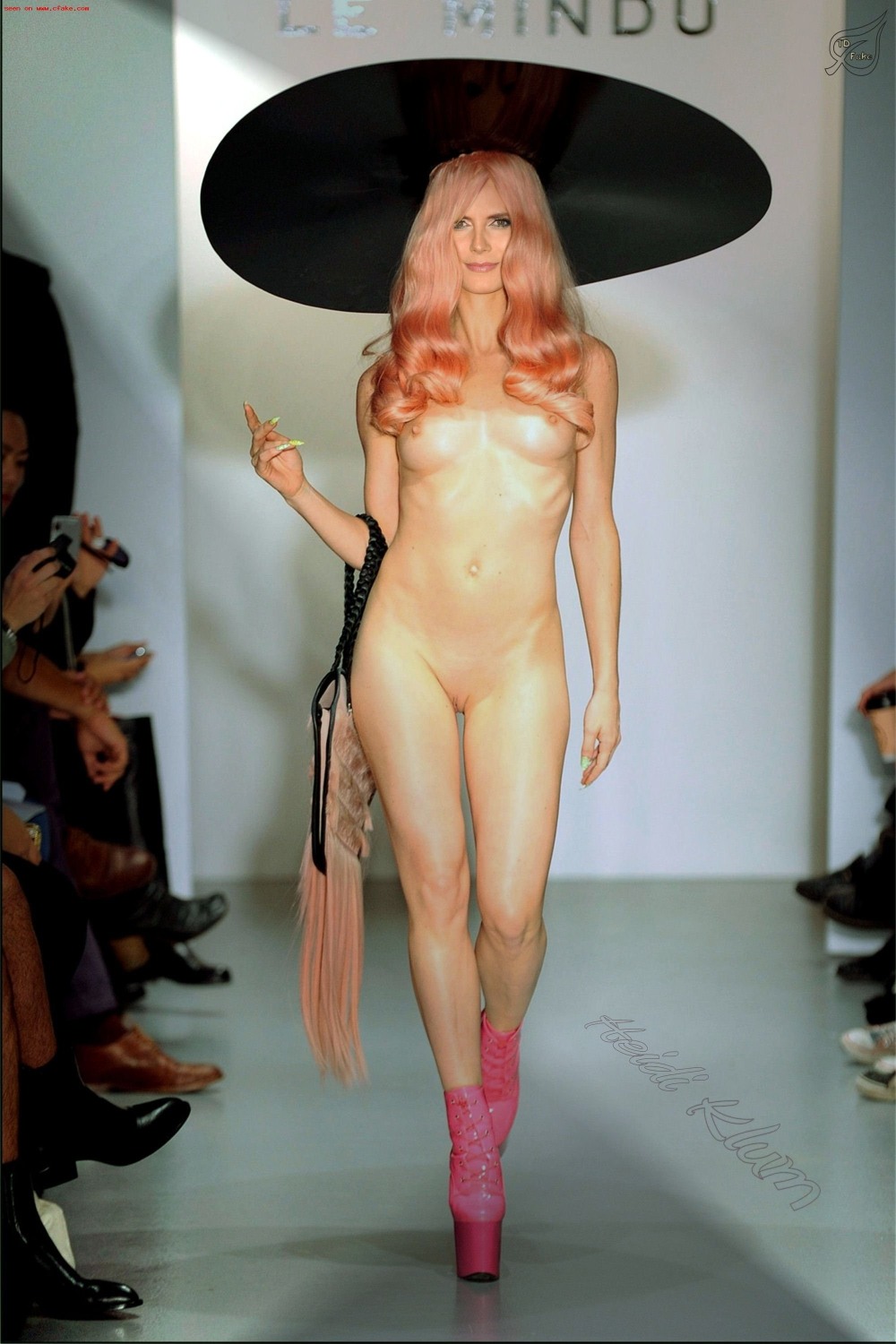 Телка дефилирует на подиуме голой (95 фото)
