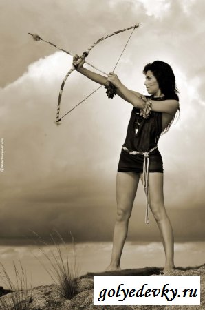 Голая телка на песчаном холодном пляже, в руках у нее лук. Телочка с луком на пляже - уже интересно, но голая грудь привлекает больше, поэтому давайте лучше рассмотрим шикарное тело этой худенькой малышки. Она кстати не против показать и попку, и талию, и красивые сиськи.